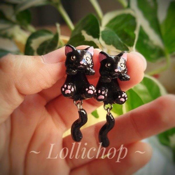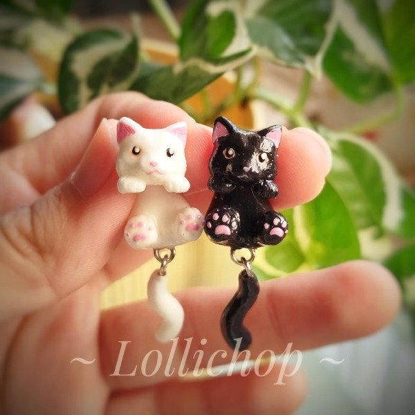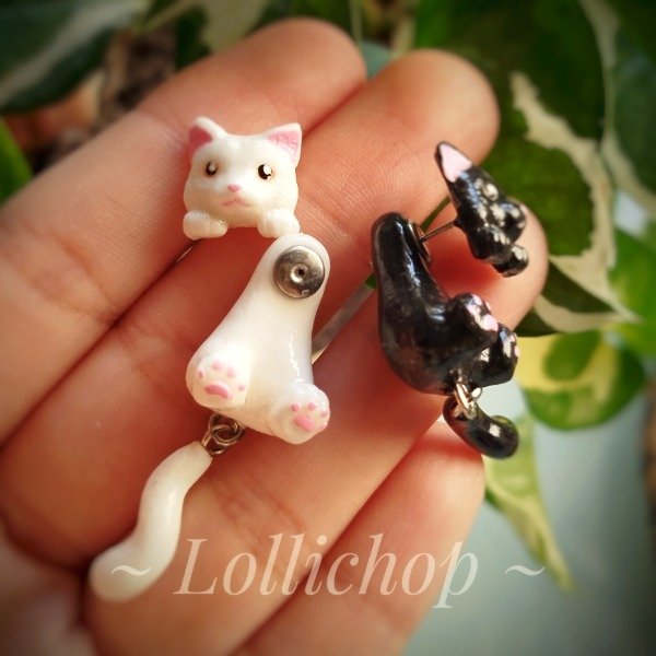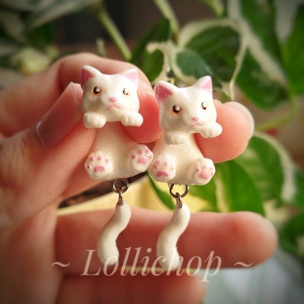 Estos gatitos quedan colgando de la oreja, la cabeza atraviesa el lobulo y el cuerpo queda colgando por detrás, con su colita colgando